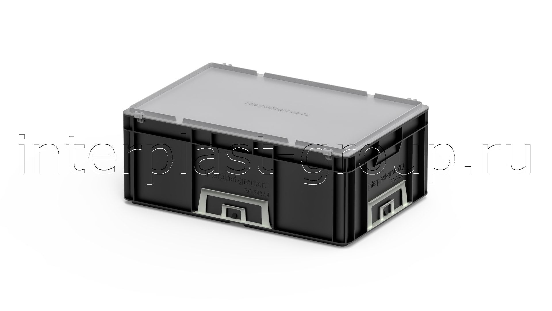 Евроконтейнер закрытые ручки/усиленное дно (черный), 600x400x220 мм