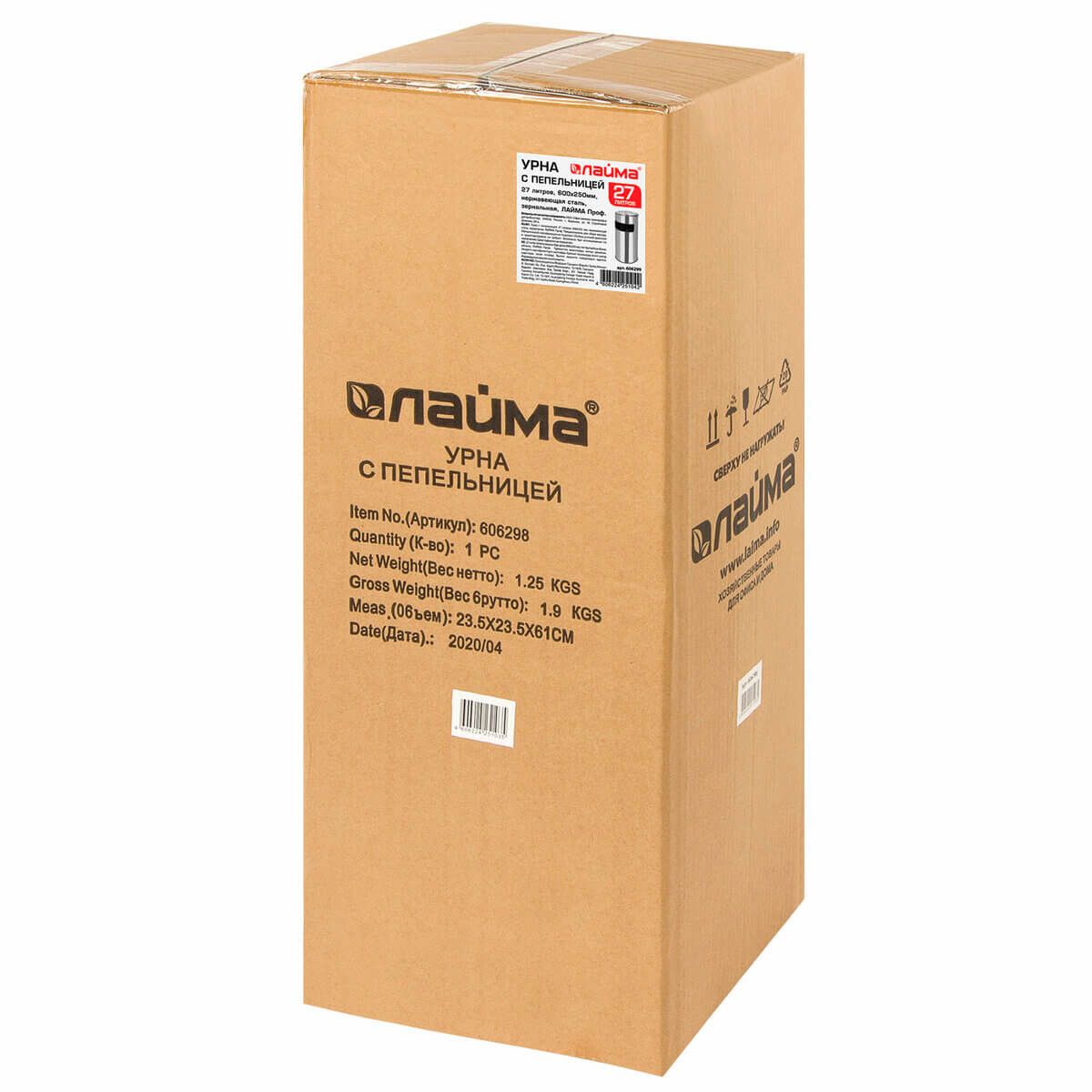 Урна с пепельницей 27 л, нержавеющая сталь, зеркальная, LAIMA PROFESSIONAL в Туапсе
